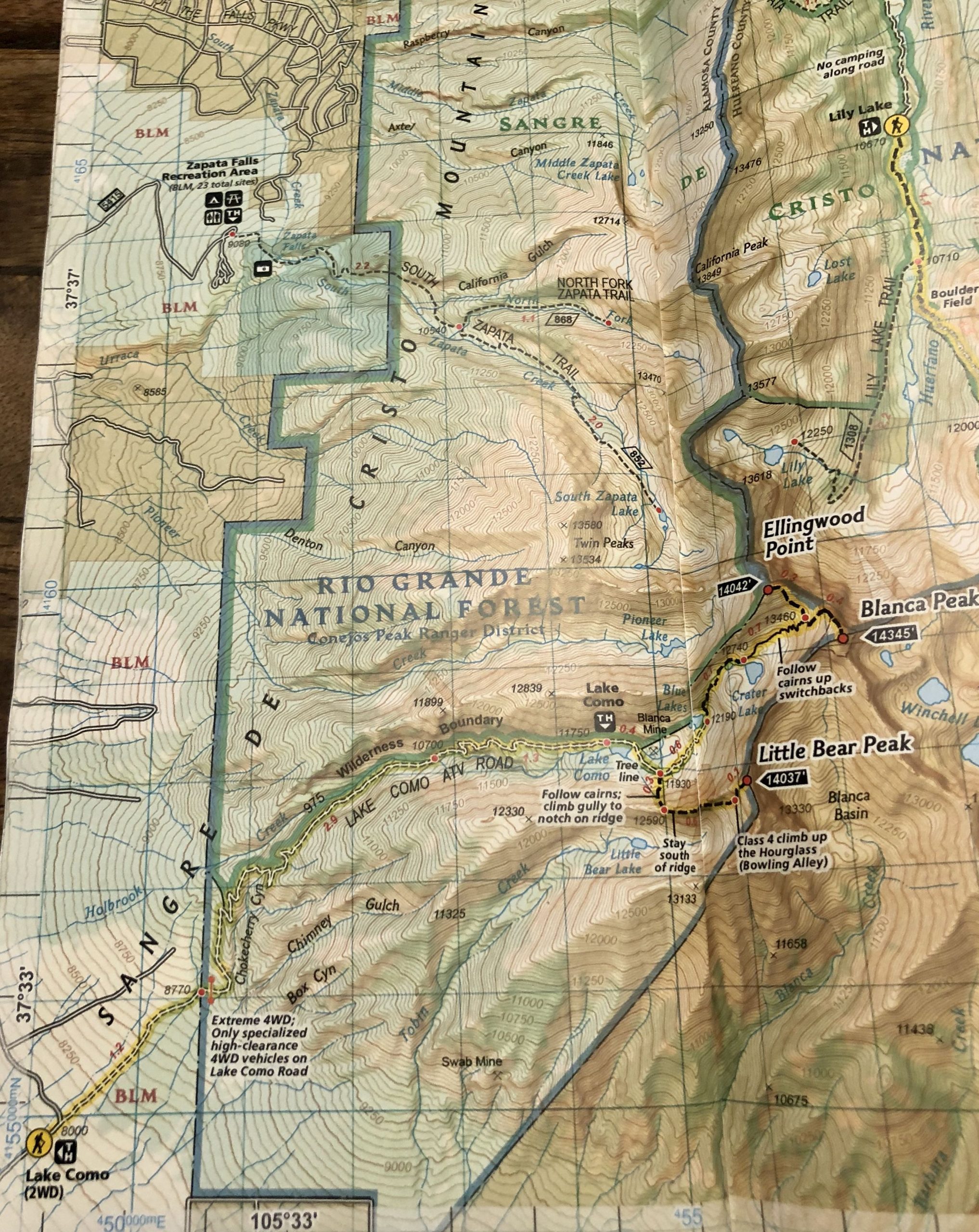 - Combining Blanca Peak with Little Bear Peak adds a lot of difficulty and risk. This will be discussed in a separate article.
