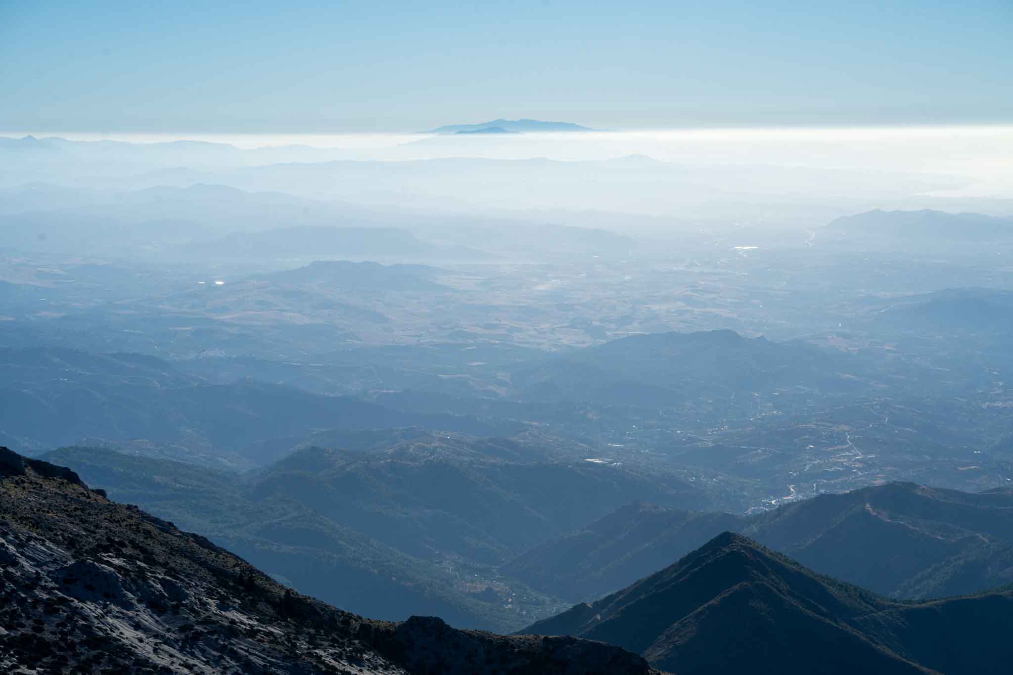 Visibility was interesting as there was a layer down low preventing great visibility, but we could see the tips of the Atlas mountains, and all the way to Mulhacen on this day.